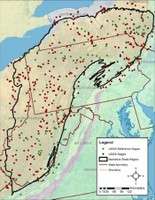 It has been recognized by the Appalachian LCC partnership that to develop and deliver landscape-level planning tools, it is essential to develop an Appalachian-wide map depicting where cave and karst habitats and resources occur across the landscape. For the past 18 months, researchers for the Appalachian LCC funded “Classification and Georeferencing Cave/Karst Resources across the Appalachian LCC” project have been gathering and analyzing data on caves and karst region wide. This work has produced a series of deliverables, including narratives, data tables, geospatial information layers, and a variety of maps. The maps and files provide a comprehensive overview of data availability for examining relationships between environmental factors and biological diversity and distribution within karst areas of the Appalachian LCC.