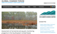 A significant challenge faced by climate scientists in the public and private sector is the need for information about the historical status of ecological systems expected to be influenced by climate change. The need is especially acute for reliable and complete information about monitoring networks maintained by government and non-governmental organizations and associated data. While many organizations monitor one or more aspects of aquatic and terrestrial ecosystems, these monitoring programs are seldom coordinated and information about both the networks and the associated data are not readily available. The DOI Southeast Climate Science Center is participating in an effort by multiple federal, state, and other organizations to develop a comprehensive and integrated assessment of monitoring networks associated with atmospheric, stream, and terrestrial ecosystems. The objective of this two-year project is to support the development of this assessment.